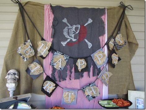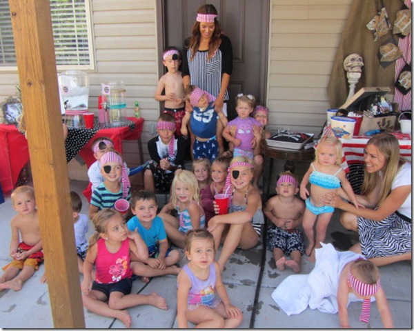 I threw a big party at the pool for him last year but this year I decided I wanted to keep it cheap and simple. So I decided do a little water party in the backyard for a couple hours. As I started thinking about what to do to make it more fun for kids I decided a Pirate Party would fun…so boy and so perfect since Dakota WAS a pirate for Halloween last year! ;)